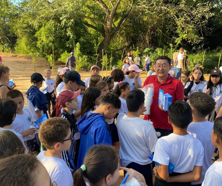 Em comemoração ao Dia Mundial do Meio Ambiente, celebrado em 5 de junho, mais de 70 alunos dos 4º e 5º anos da Escola Municipal de Educação Básica (EMEB) Vice Prefeito Antônio Mamoni participaram nesta terça-feira (4) de uma palestra sobre o uso consciente da água e de um plantio coletivo de mudas na área de preservação ambiental da Rua Silvestre Chiari, no Jardim Bom Retiro.