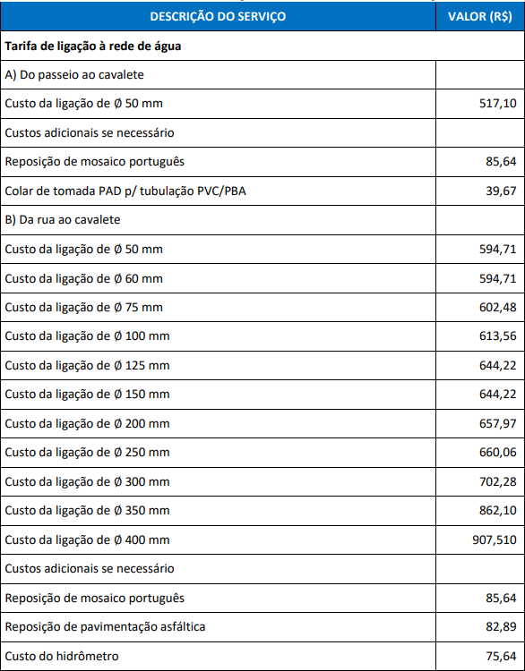 | Consumo até 10 m3 | 23,73 | 23,73 | 47,46 |