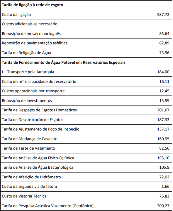 | Consumo até 10 m3 | 11,87 | 11,87 | 23,74 |